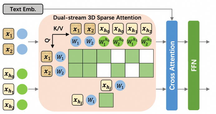 This block-sparse attention mask enables camera control and memory guidance with reduced computational cost.